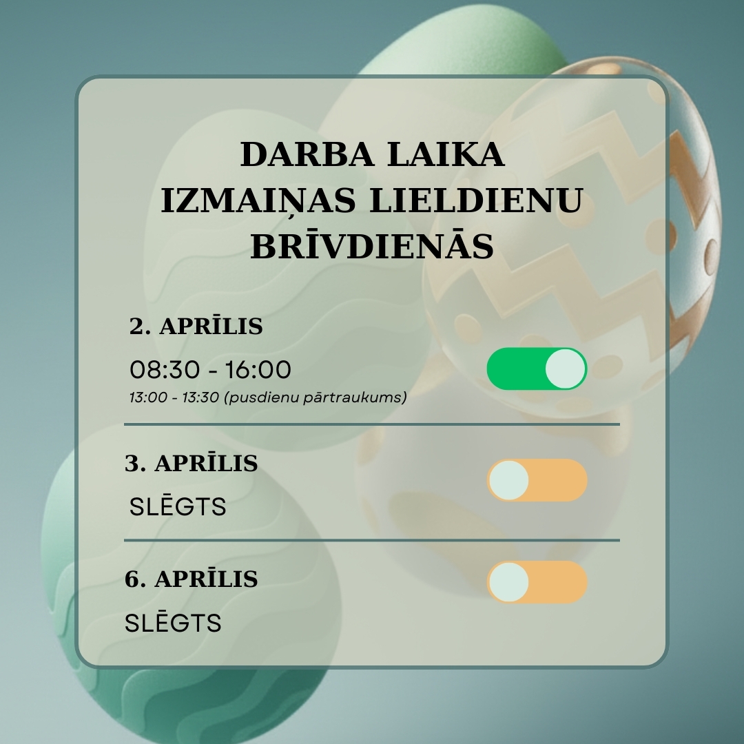 Darba laika izmaiņas Lieldienu brīvdienās!